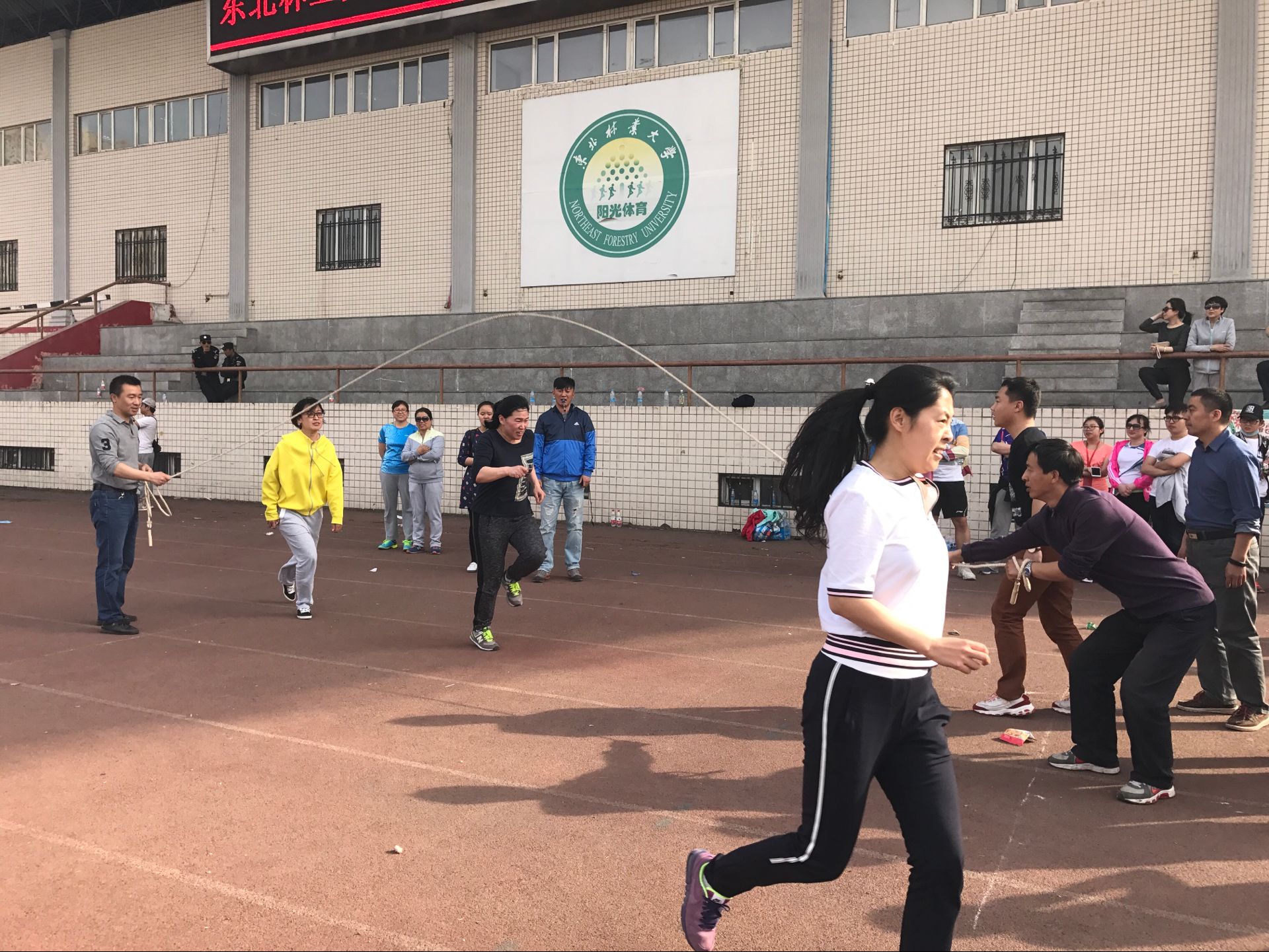 3日下午,学校工会组织的春季徒步行以及团体跳绳比赛顺利举行。我院教职工积极响应学校工会号召,由院领导带队,全员参与了全场4.5公里的徒步行,以及跳绳比赛。跳绳比赛由2名摇绳和12名跳绳成员组成,在经过严密的商量布置以及一次次的练习后最后一个单位压轴出场,各位成员配合默契,激情澎湃,在场外观众的呐喊加油声中,三分钟定时时间内共计完成181次跳绳,名列全校第七名。