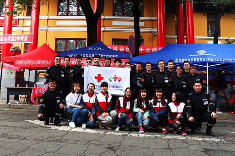 高考前夕,应急志愿者协会对志愿者进行专业培训,从“哈尔滨红十字东林救援队”选拔出18名获得救护员资质的志愿者组成哈尔滨红十字会考场保障组。哈三中处于我市繁华地带,现场车流人流十分密集,志愿者们在执行任务之前进行了充分的准备,制定了突发状况应急预案以及现场人员的调度员。在现场由东林救援队队长王瑞进行指挥,队员统一佩戴装备,着装整齐。在与哈三中校领导协调后,组织来自哈市各高校的百名志愿者对现场的群众进行疏导。现场秩序良好,考生安全有序入场、退场。同时,东林救援队结合自身专业优势,为现场家长发放应急安全手册,教授现场家长应急救护知识,对家长进行心理干预,减缓家长焦急等待的紧张心情,收效良好。