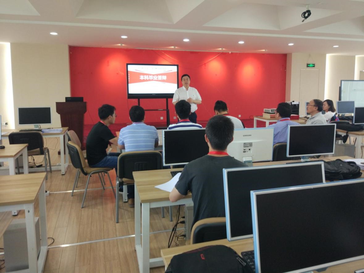 上海同捷科技股份有限公司总裁雷雨成、研究院院长邓建国、第二中心主任朱峰、各研发中心工程师代表受邀参与本次毕业答辩并与交通学院车辆工程系教师共同担任评委。本次共有13名车辆工程专业学生参加毕业答辩。答辩伊始,同捷公司总裁雷雨成发表讲话,对我校学生在公司实习期间的表现给予了高度评价,并期待与我校的继续长期合作。毕业答辩分为论文自述、图纸审查和导师提问三个环节。由于组织周密、安排精细,整个答辩过程井然有序。同学们采用PPT的形式向评委老师展示了自己的毕业设计成果,态度严谨认真,阐述准确全面,例证鲜明有力。评委们专注聆听,针对论文内容提出相关问题。这种面对面的问答形式,一方面考察学生对自己论文的熟悉、理解程度;另一方面考察学生对专业知识的掌握程度及心得体会。同学们机智冷静、回答简明扼要,虽然仍存在一些不足,但评委老师的肯定与建议,使同学们受益匪浅。