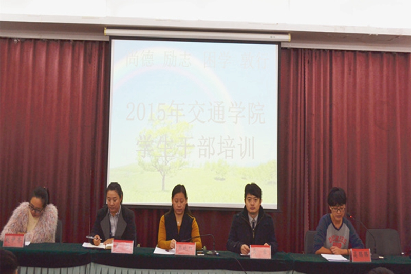 为了提高学生干部的思想觉悟和服务意识,加强学生干部之间的沟通交流,加强学生干部的合作精神和工作能力,2015年11月1日上午9点整,交通学院于交通学院501会议室召开了2015年秋季学生干部培训活动。本次培训活动邀请到交通学院党委副书记、副院长吴晓红、2013级学生辅导员高璐璐、2015级学生辅导员王恒、2012级学生辅导员龚露主讲。2014级学生辅导员赵伊齐、交通学院2013级及2014级全体学生干部参与了本次活动。
