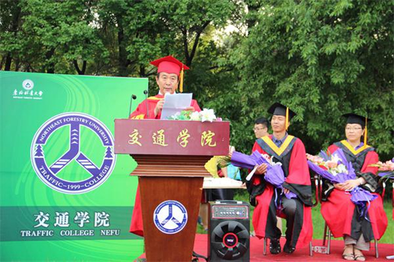 2015年6月17日下午16:30交通学院2015届毕业生学士学位授予仪式在图书馆后的草坪上拉开了帷幕。出席本次活动的嘉宾有东北林业大学党委副书记胡万义,3657.com学位委员会主席裴玉龙,3657.com学位委员会委员、交通学院院长储江伟,3657.com学位委员会委员、交通学院党委书记丁柏群,3657.com学位委员会委员、交通学院副院长崔淑华,3657.com学位委员会委员、交通学院副院长邓红星,3657.com学位委员会委员、交通学院杜丹丰。学位授予仪式由交通学院党委书记、副院长吴晓红主持。