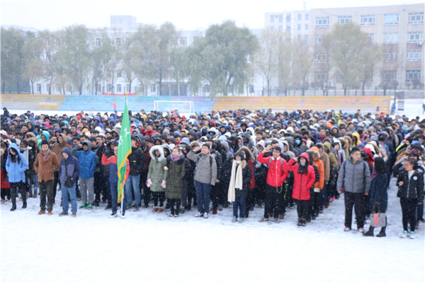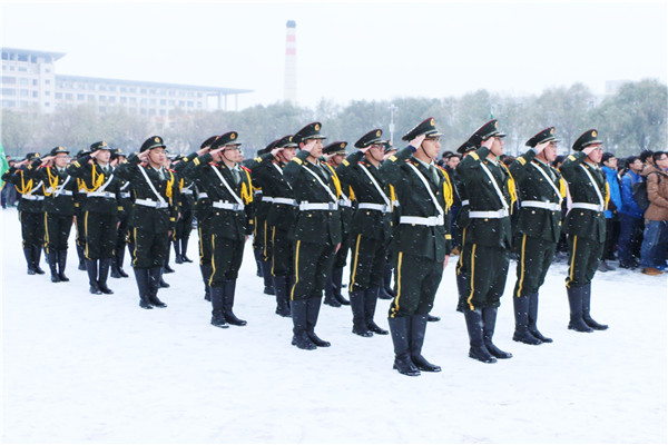 升旗仪式开始,全体师生行注目礼,英姿飒爽的国旗护卫队冒雪护送鲜艳的五星红旗进场,伴随着庄严的《义勇军进行曲》,五星红旗冉冉升起,迎风飘扬。接着,由优秀学生代表进行国旗下讲话。80年前,中国共产党领导下的工农红军取得了两万五千里长征的胜利,创造了经久不衰的时代精神;他们血战湘江、四渡赤水、巧渡金沙江、强渡大渡河,飞夺泸定桥,翻越大雪山,攻占腊子口……作为大学生的我们有责任,也有义务去弘扬、去发展、去创新长征精神。在21世纪的今天,我们的国家开始了建设带有中国特色的社会主义新长征。当代大学生作为新时代的主力军,更应该肩挑大梁,接过长征精神的光辉旗帜,适应时代发展的要求,锐意进取,自强不息,真正把爱国之志变成报国之行。