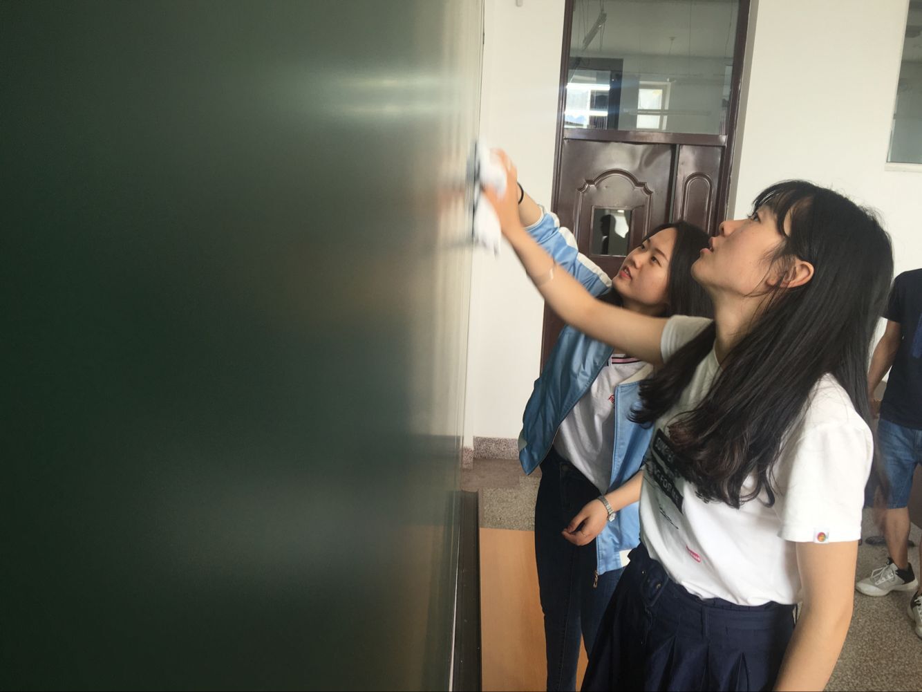 2014级共计八个班,清扫了15个教室,班级干部,党员同志组织班级大部分同学参与到了此次的义务劳动中,学生认真的擦拭了黑板、窗台,每一张课桌,同时还认真的拖了教室的地面,为清洁教室,在离校前做点小贡献,加强学生爱校教育。所有毕业生们都热情澎湃,精力充沛的投身到爱校荣校活动中,积极打扫教学楼教室的环境卫生。旨在创造一个良好的学习环境,向学弟学妹们传递一种吃苦耐劳、知足感恩的精神力量。在活动过程中,所有人都干劲十足,平时的卫生死角都被打扫的十分干净,各种垃圾也被清理出去。虽然苦点累点,但参与其中的人都认为这是一次很有意义的事情。
