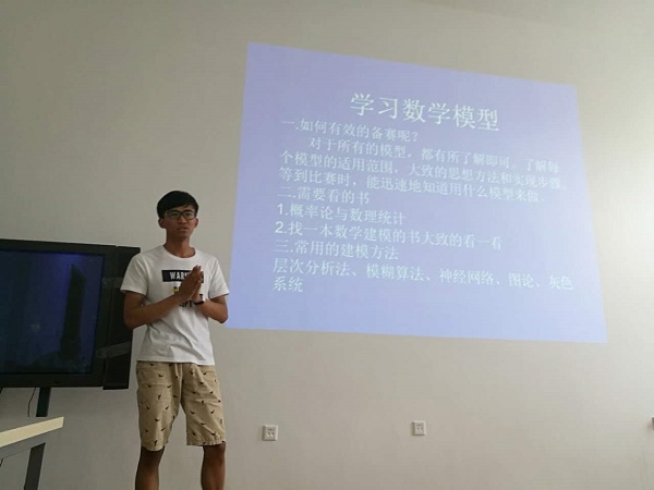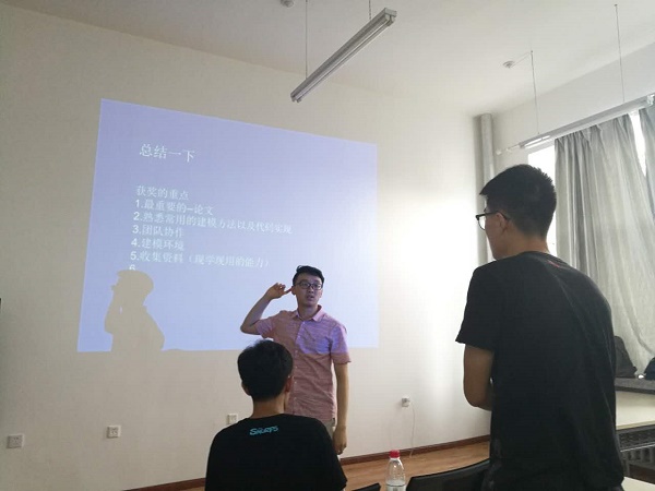 2017年7月15日下午2点东林KAB创业俱乐部在交通学院319举办了数学建模参赛经验交流会,分享经验的嘉宾有国家级美国大学生数学建模竞赛一等奖,国家级中国大学生数学建模竞赛本科组二等奖,省级东北三省数学建模联赛三等奖获得者——赵明卓,于博,李志远。三位嘉宾为参加交流会的其他同学主要就编程软件,建模,论文书写三个方面进行了讲解。